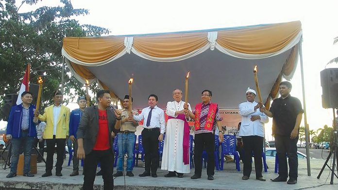 Refleksi tentang nilai-nilai Pancasila dibawakan oleh Ketua Komisi Kepemudaan Keuskupan Manado, P. Andreas Rumayar, Pr dimana semangat 100 Persen Indonesia diangkat dalam refleksi tersebut. Puncak dari perayaan vigili Pancasila ini adalah pemasangan obor perdamaian oleh seluruh pemuka Agama dan ditutup dengan doa dari seluruh lintas agama.