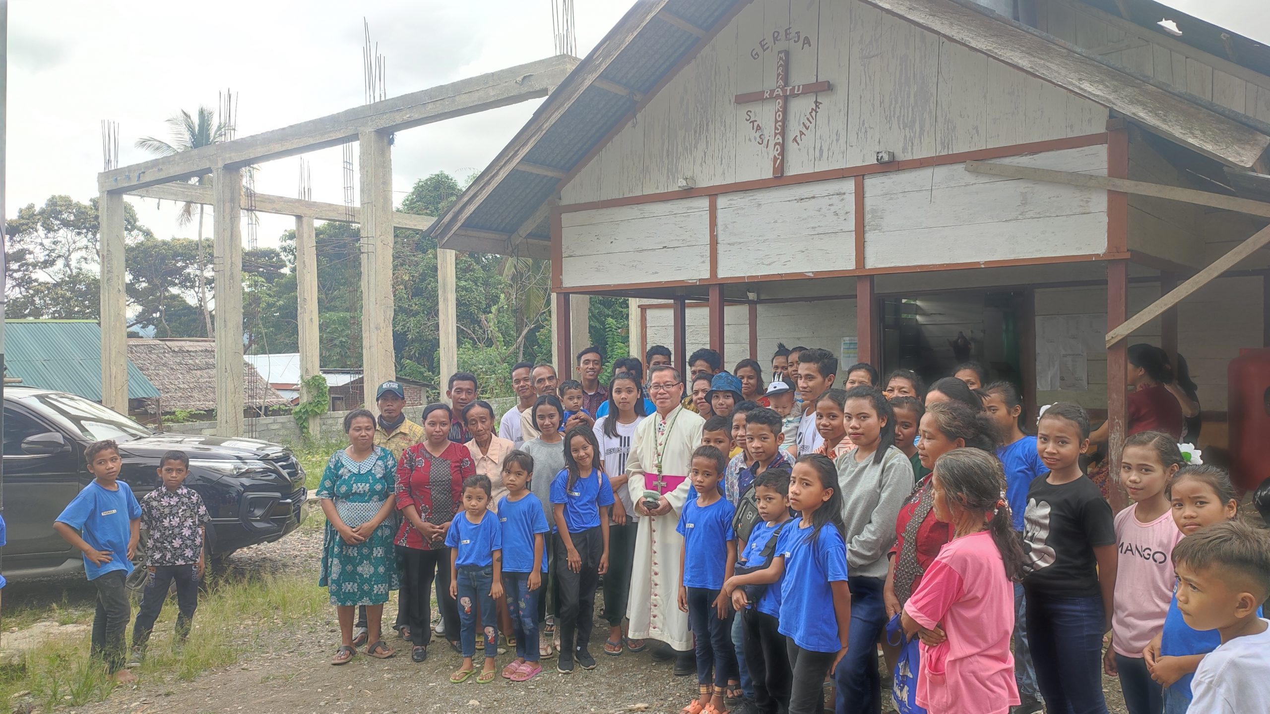 “Pembangunan gereja sejauh ini sudah sampai tahap tiang. Sudah ada kayu untuk tahap selanjutnya. Dan direncanakan akan masuk tahap pemasangan atap” Kata ketua stasi.