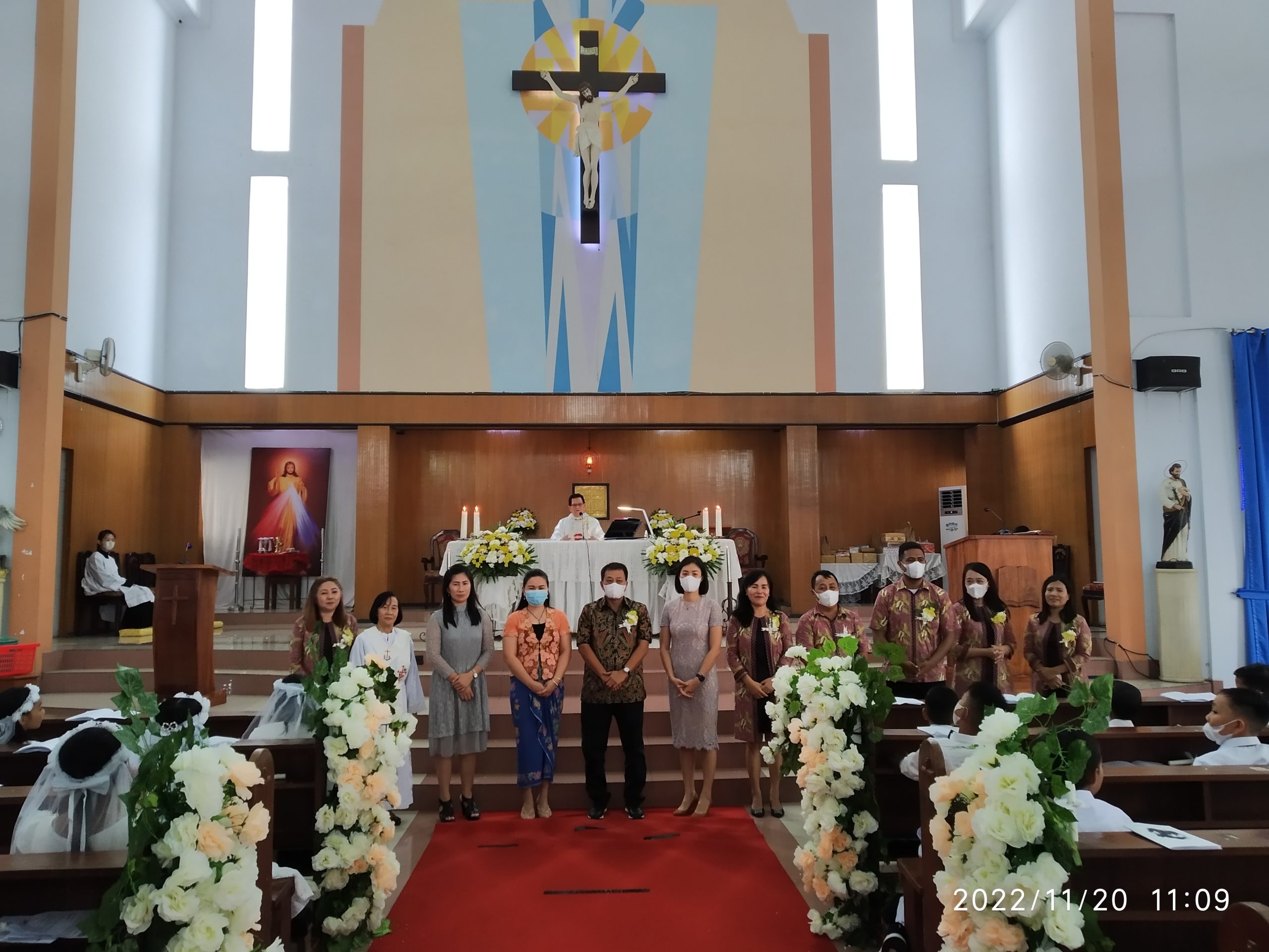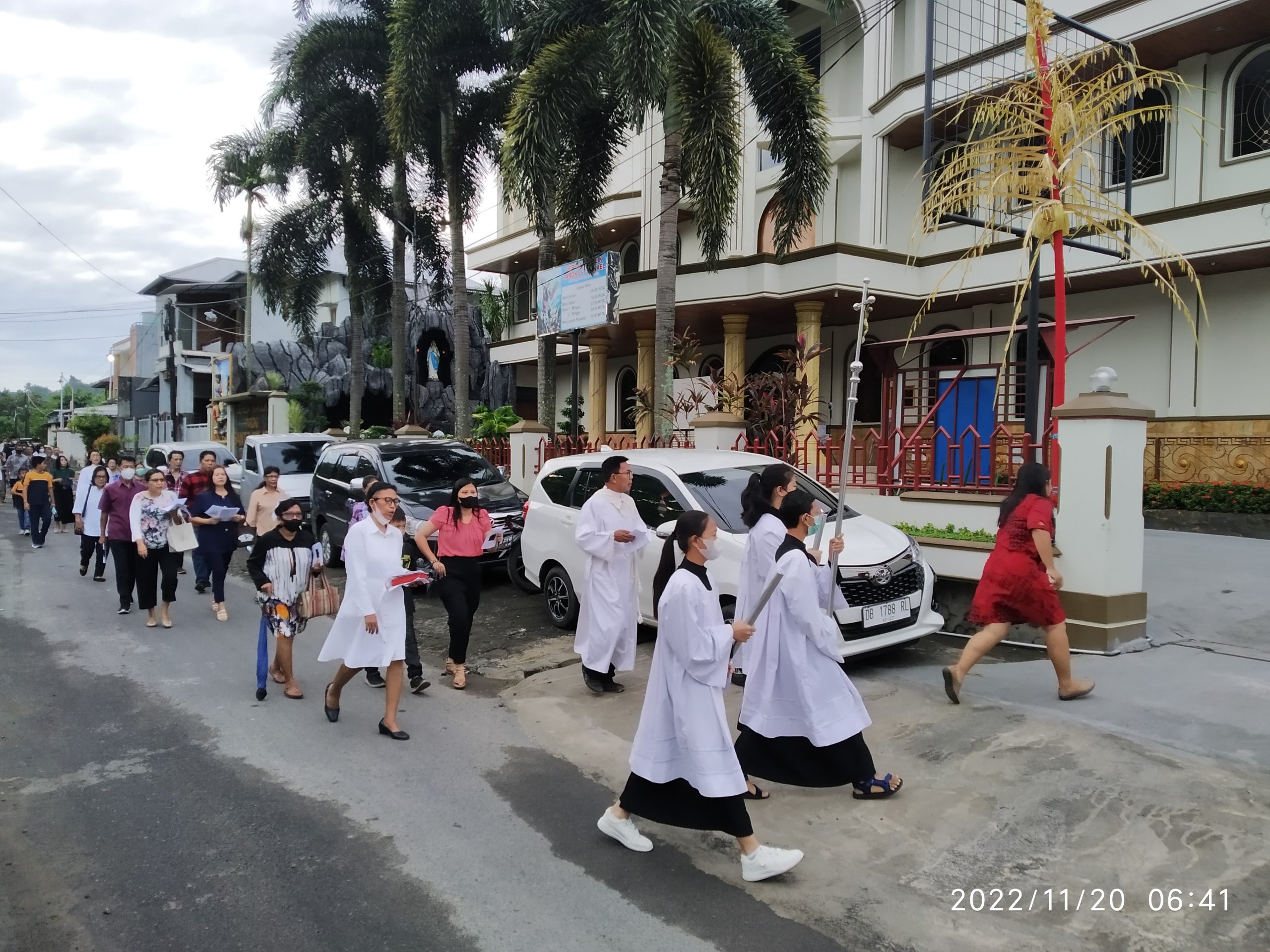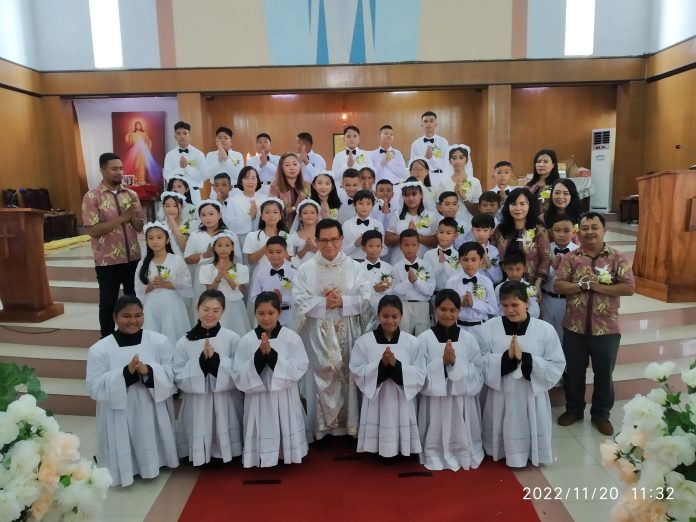 Hari Raya Tuhan Kita Yesus Kristus Raja Semesta Alam di Paroki St Mikael Perkamil Manado (SMPM) diperingati dengan perarakan dan penerimaan Komuni Pertama.