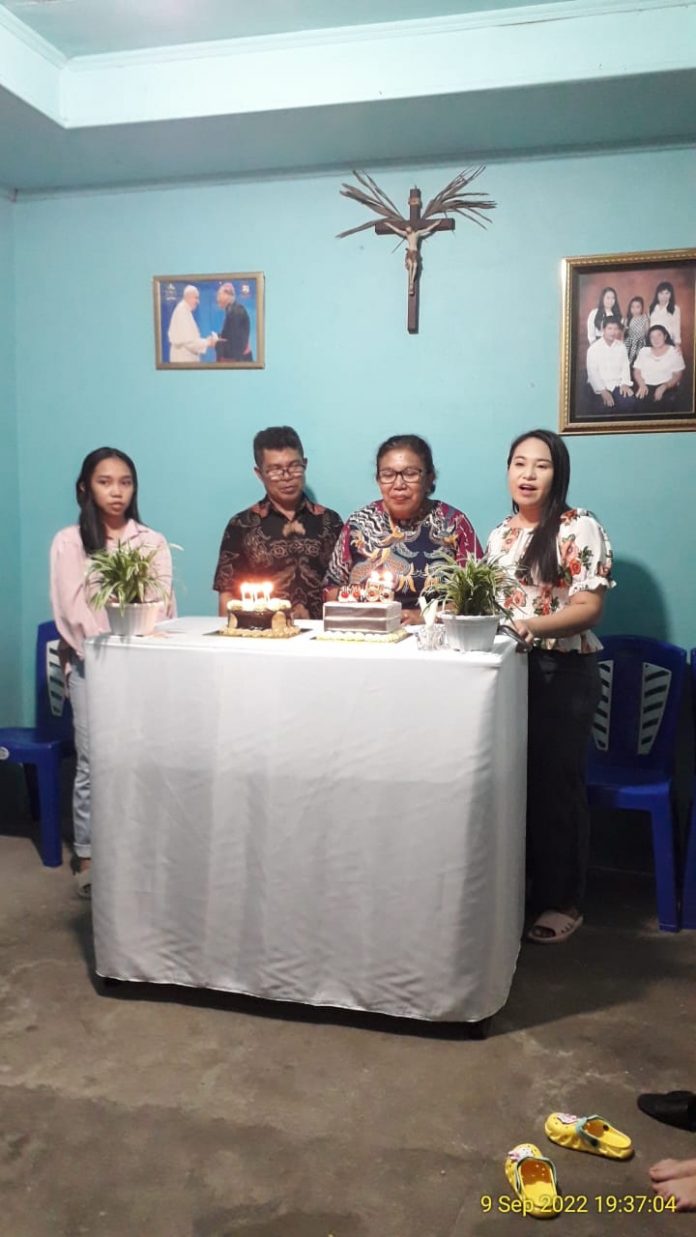 Ibadah Wilayah Rohani (WR) Sta Eufrasia disatukan dengan Hari Ulang Tahun (HUT) suami istri, bertempat di keluarga Tine Pandesingka.
