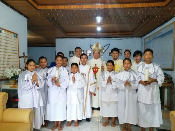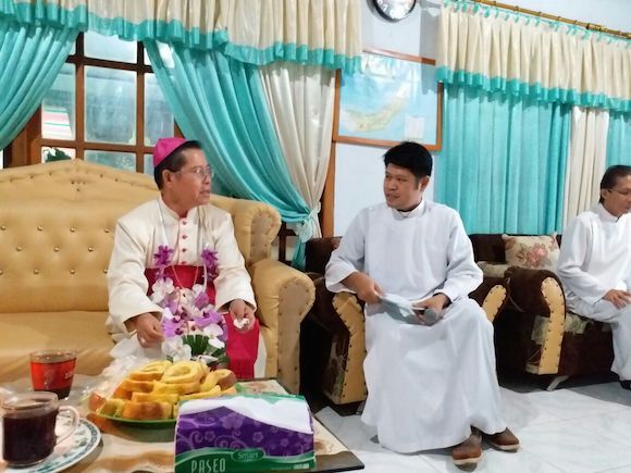 Minggu, 17 September 2017, Sesudah memimpin Perayaan Ekaristi, yang berlangsung meriah dan penuh khidmat di Gereja Paroki Kristus Raja Kotamobagu, Mgr. Rolly Untu, msc, bertolak ke Paroki Maria Pengantara, Dumoga. Sebagaimana di Kotamobagu, bapa uskup disambut dengan penuh sukacita, oleh Pastor Novry Korompis, pr, DPP bersama seluruh umat.