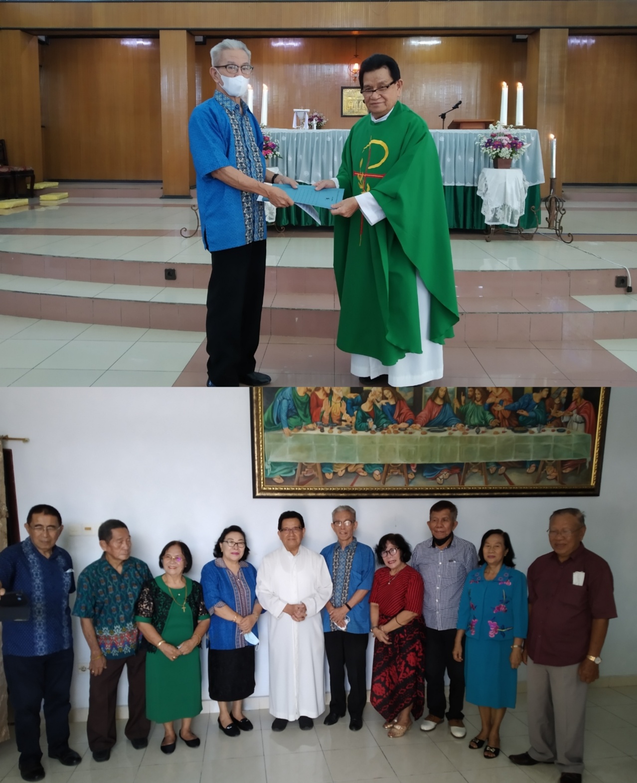 Pastor Paroki St Mikael Perkamil Manado (SMPM), Wens Maweikere, PR melantik pengurus Lanjut Usia (Lansia) Paroki SMPM pada Misa ke III sesudah kotbah, Minggu (24/7/2022).