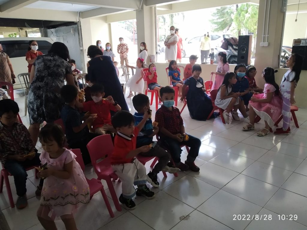 Di akhir ibadah semua anak mendapat snack.(Komsos SEKAMI St Mikael, Kartini Marintja/mvr).