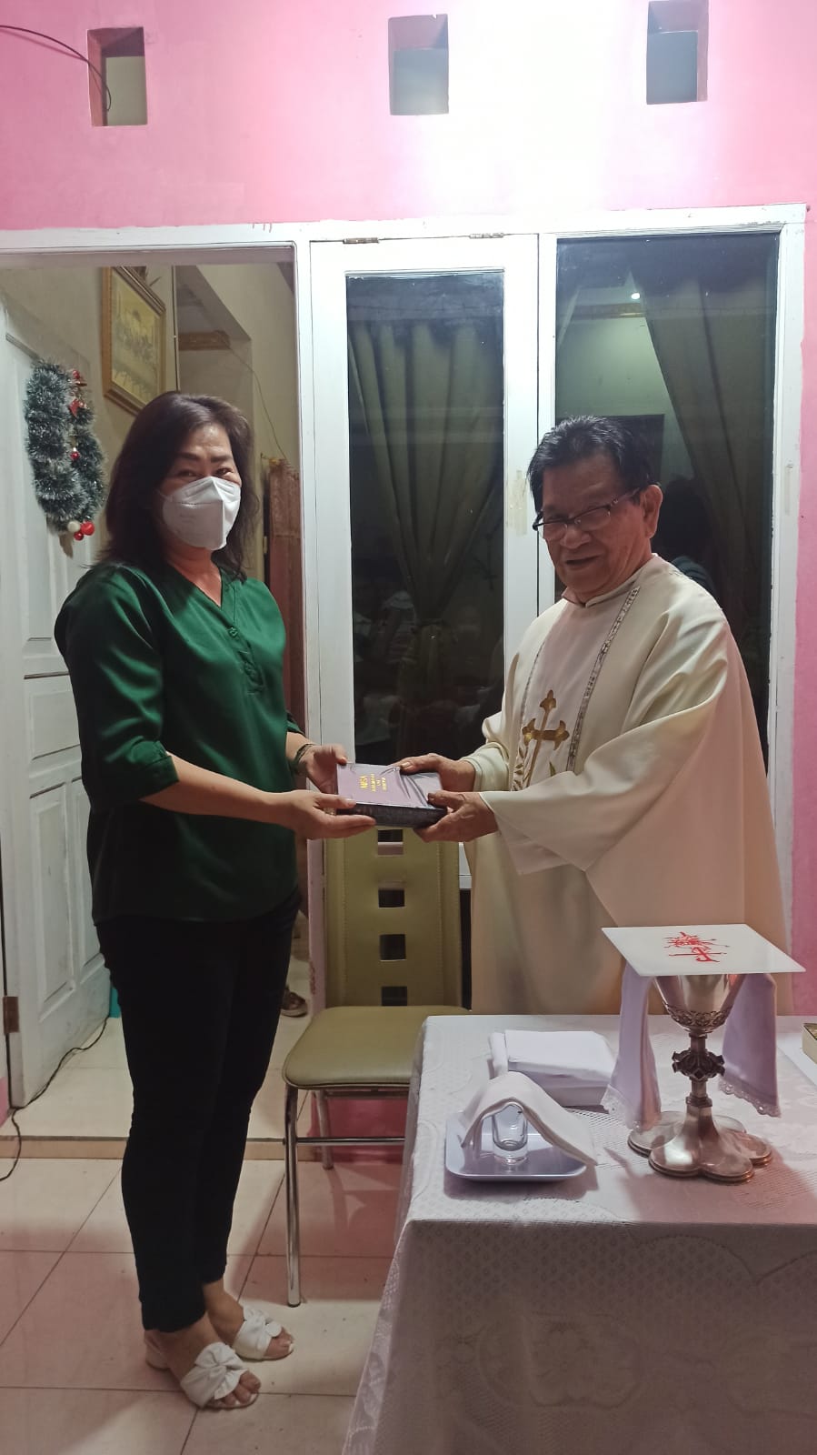 Setelah misa dan sebelum santap kasih bersama, Pastor Wens memberikan hadiah sebuah buku Misale Romanum kepada WR ini sebagai bentuk apresiasi karena yang pertama melunasi sumbangan per wilayah rohani untuk pengadaan kelengkapan aula sebesar Rp. 6.000.000.
