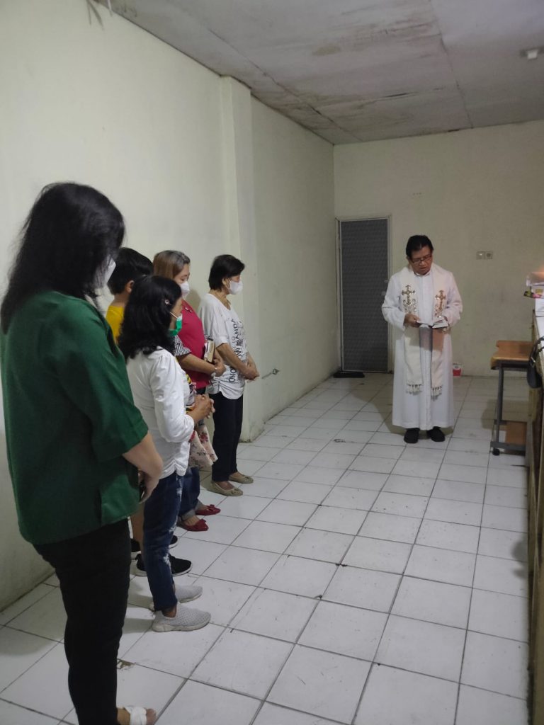 Saat pemberkatan kios tersebut, Pastor di dampingi Ketua Wilayah Rohani (WR) Sta Theresia Avila, Lenny Chandiana.