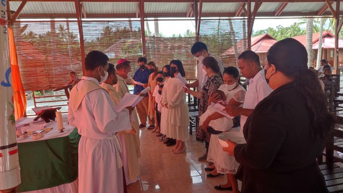 “Perayaan ini adalah buah dari iman kita. Penerimaan sakramen Baptis dan juga komuni pertama hari ini merupakan buah dari iman itu. Karena itu iman tugas kita adalah menjalankan tugas perutusan sebagai, sebagaimana para rasul yang dipanggil dan diutus untuk mewartakan Kerajaan Allah,” Kata bapa Uskup dalam homilinya.