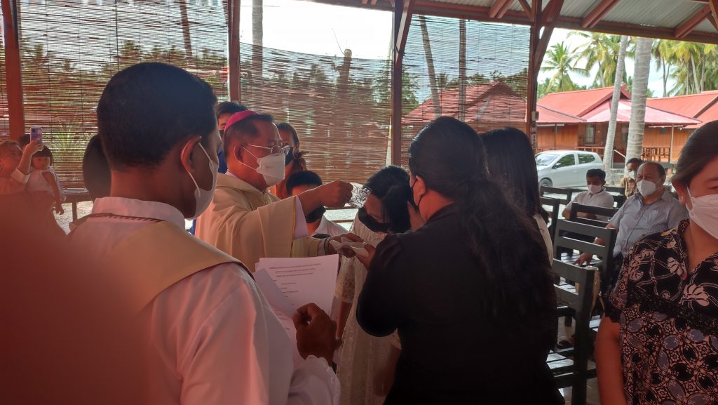 KOMSOS MANADO – Setelah mengunjungi stasi-stasi di kevikepan Luwuk Banggai, hari ini Rabu 6 Juli 2022 berangkat menuju kevikepan Palu. Pukul 06.00 rombongan bapa Uskup berangkat. Dan sejenak singgah di stasi Maria Ratu Rosari Ampana. Pukul 09.30 bapa Uskup tiba di ampana disambut umat stasi yang siap untuk Misa bersama.