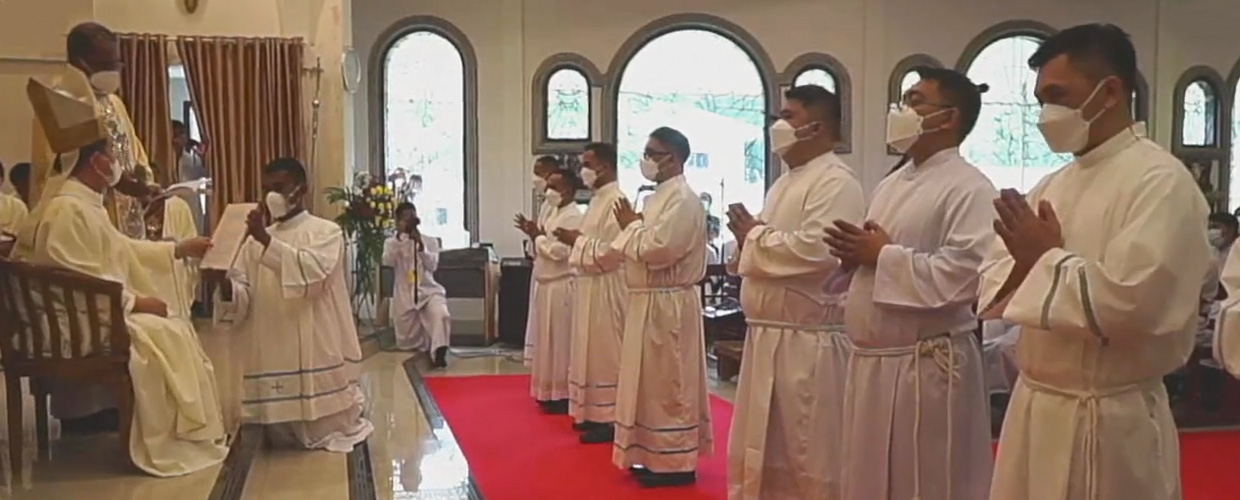 Uskup Keuskupan Manado Mgr. Estephanus Benedictus Rolly Untu, MSC, Sabtu 25 Juni 2022 mentahbiskan sembilan diakon di Kapel Seminari Tinggi Hati Kudus Yesus, Pineleng. Perayaan ekaristi dirangkaikan pula dengan pelantikan 33 Lektor dan 18 Akolit.