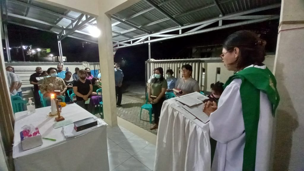 Ibadah dipimpin Koordinator Seksi Liturgi, Florce Lapendala yang dihadiri oleh 24 umat WR.